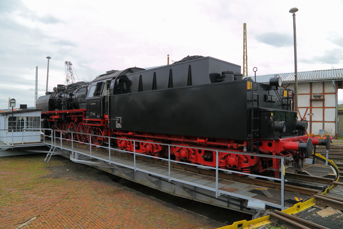 Fotopräsentationsfahrt der Meininger 50 380 am Nachmittag des 07.10.2017 auf der Drehscheibe im Museums-Bw Arnstadt. Die Aufnahme entstand im Rahmen einer Sonderfahrt mit Museumsbesichtigung. (Bild 4)
