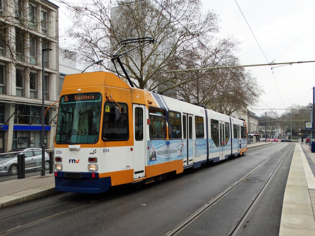 RNV Düwag M8C 3254 (modernirsiert) am 25.02.16 in Heidelberg auf der Linie 26
