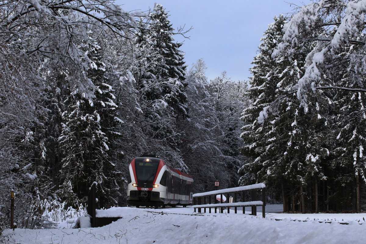 Zwischen Bad Pirawarth und Sulz Nexing gibt es wieder Nostalgieverkehr. Den Auftakt machten am Sonntagen zwischen 26.11. und 17.12. je 2 Zugspaare pro Tag. Die Garnitur auf der rechten Seite pendelte am 17.12.2017.