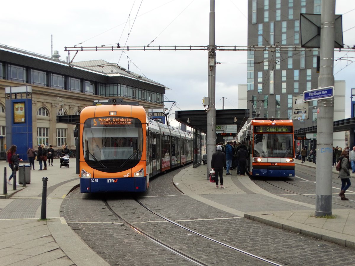RNV Bombardier Variobahn 3285 (RNV8) und GT6N 5646 am 16.12.17 in Mannheim Hauptbahnhof