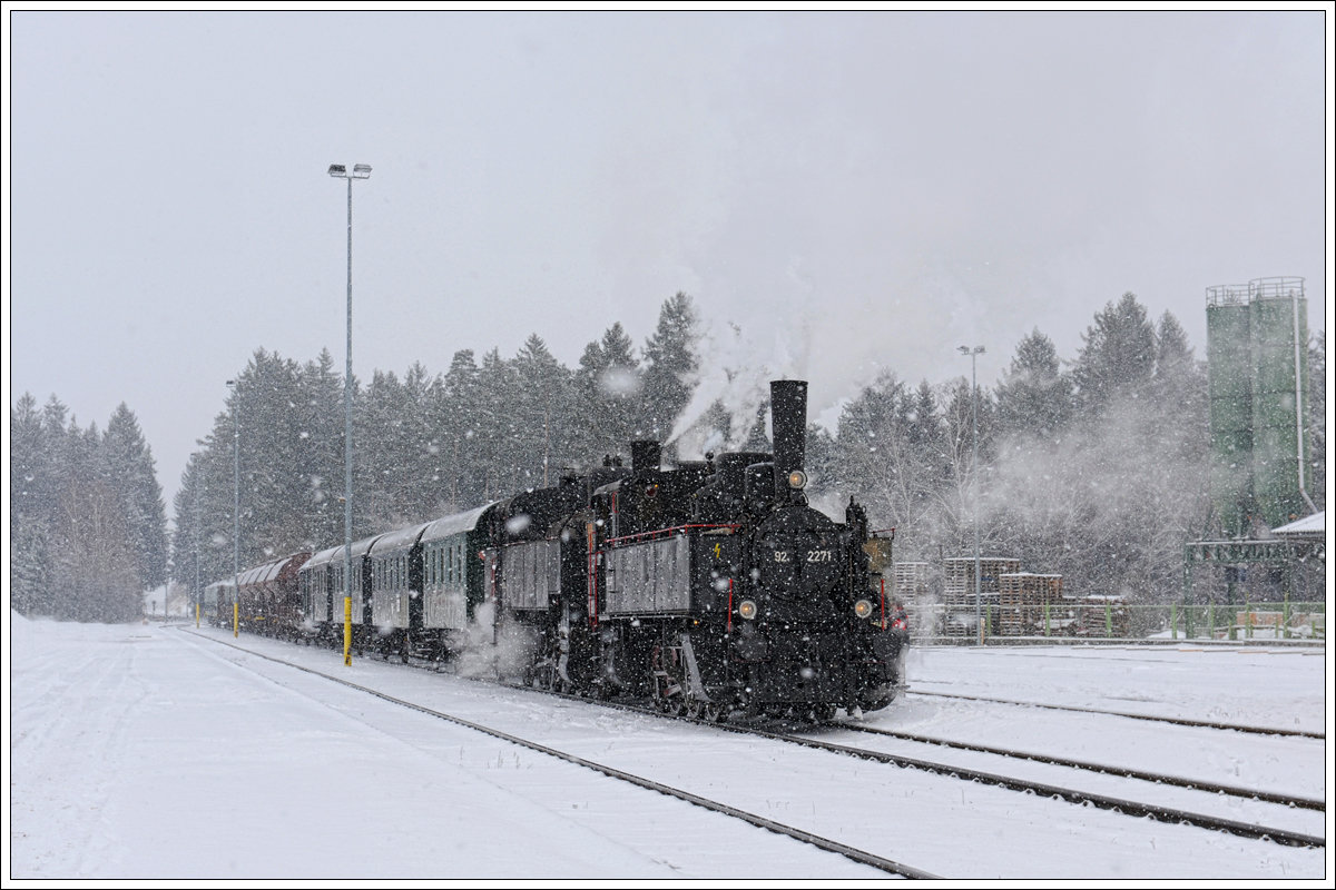 92.2271 vom MLV als Vorspann vor 93.1420 am 10.2.2013 als NF 95405 aufgenommen kurz nach Ratschenhof nächst Zwettl.