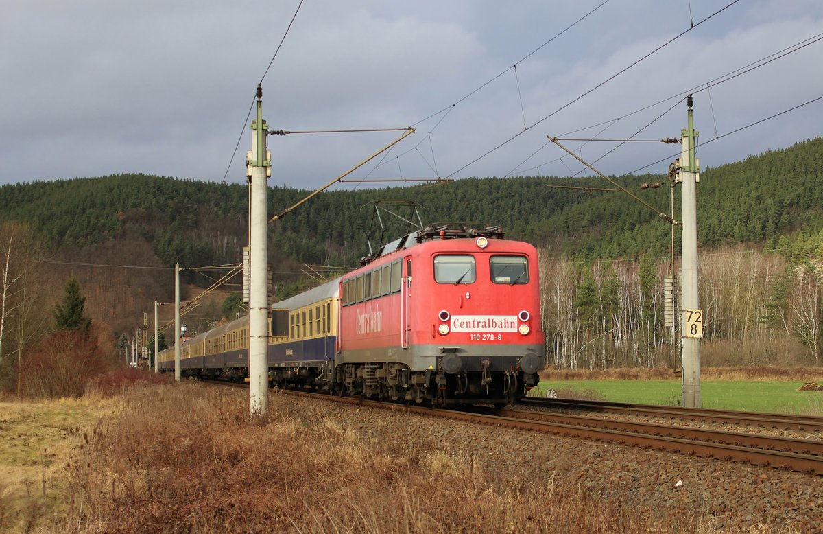 Am 30.12.17 fuhr die Centralbahn 110 278-9 (DPE 1899) einen Eishockey Sonderzug von Dresden nach Holzkirchen. Ich habe den Zug in Remschütz erwartet und die Sonne war auch zur Stelle.