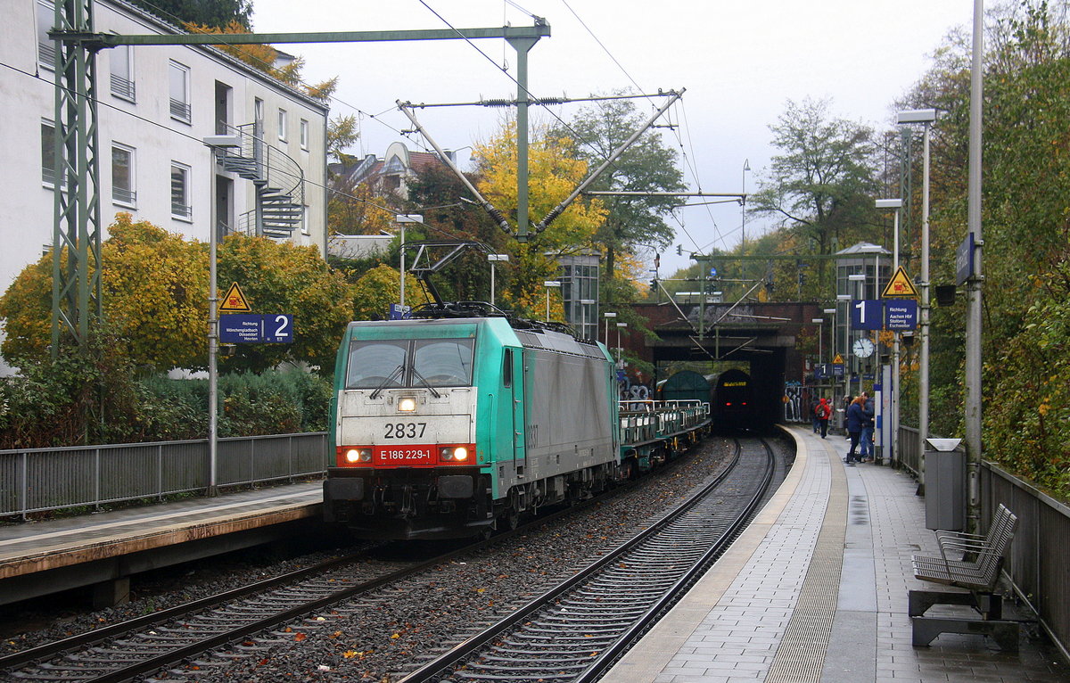 Die Cobra 2837 kommt aus Richtung Köln,Aachen-Hbf und fährt durch Aachen-Schanz mit einem Güterzug aus Köln-Gremberg(D) nach Antwerpen-Noord(B) und fährt in Richtung Aachen-West. Aufgenommen vom Bahnsteig von Aachen-Schanz.