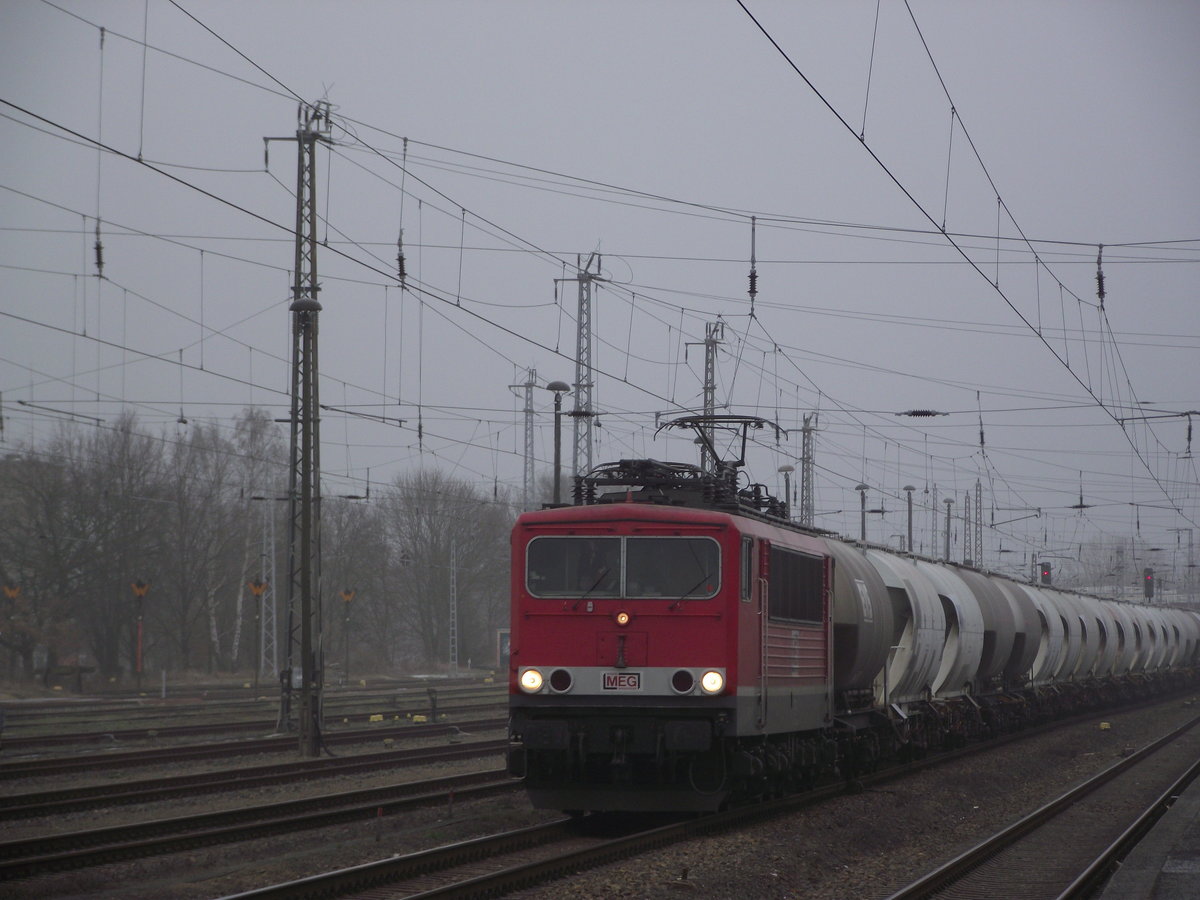 Am Montag den 30.01.2017 Durchfährt um 12:56 Uhr MEG 155 Mit dem Cemex (Rüdersdorf-Rostock Seehafen) den Bahnhof Oranienburg.