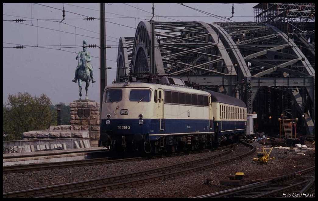 110356 fährt mit dem D 1445 am 26.4.1990 um 14.56 Uhr in den HBF Köln ein.