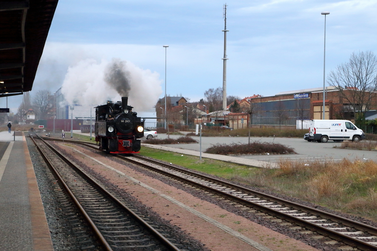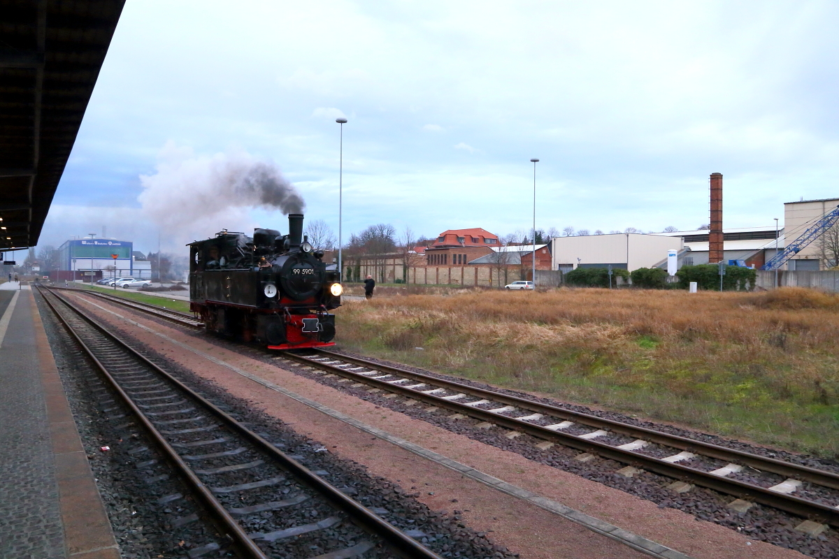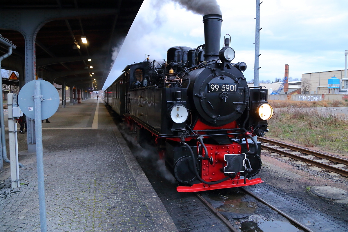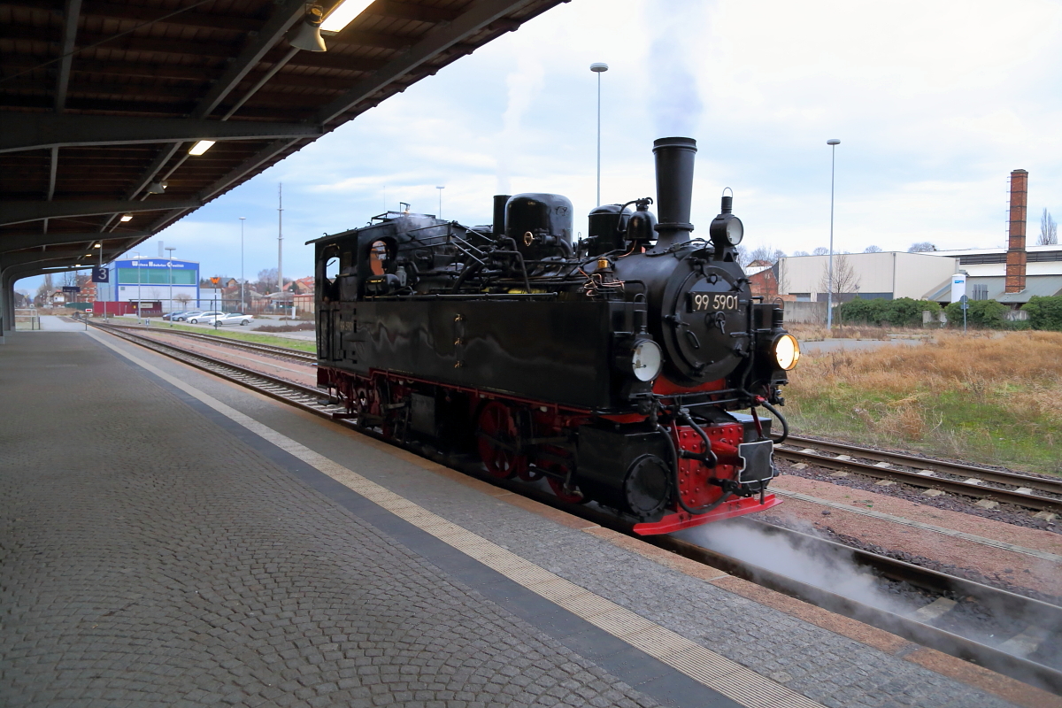 Nachdem 99 5901 am 07.02. an der dreitägigen Winter-Sonderzugveranstaltung der IG HSB im Jahre 2016 teilgenommen hat, ist sie nun wieder in Quedlinburg angekommen, womit das offizielle Programm beendet ist. Für mich, wie immer, der Anlaß für ein großes Dankeschön an alle Beteiligten dieses umfangreichen Events, allen voran der IG HSB als Organisator, desweiteren aber auch der HSB GmbH als Ausführenden, den Lok- und Zugpersonalen, die ebenfalls ihr Bestes gaben und nicht zuletzt auch den Fahrgästen, die (fast) ausnahmslos eine gerade vorbildliche Disziplin an den Tag legten, sodaß jeder zu schönen Bildaufnahmen kam! Genau das sind die Gründe, warum auch ich, wie viele Andere, immer wieder gern an diesen Veranstaltungen teilnehme! Bis zum nächsten Mal im schönen Harz mit seiner tollen Dampfeisenbahn!!! ;-)