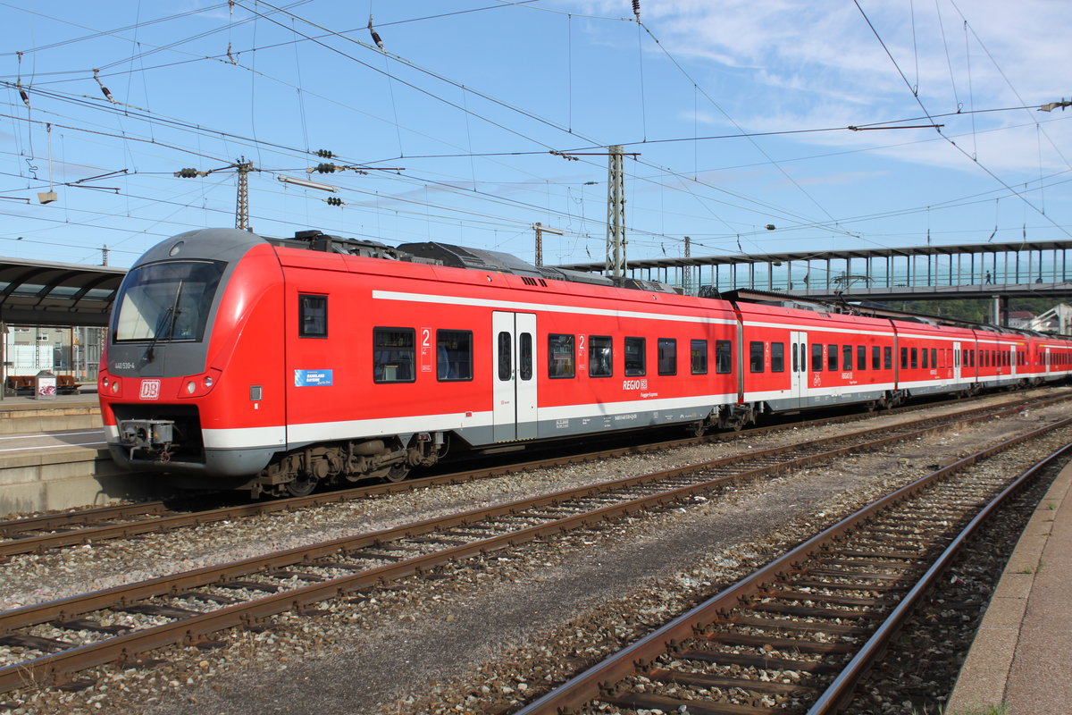 Am 05.09.2015 steht ein Coradia Continental des FuggerExpress in Ulm hauptbahnhof und wartet auf die Abfahrt in Richtung München.