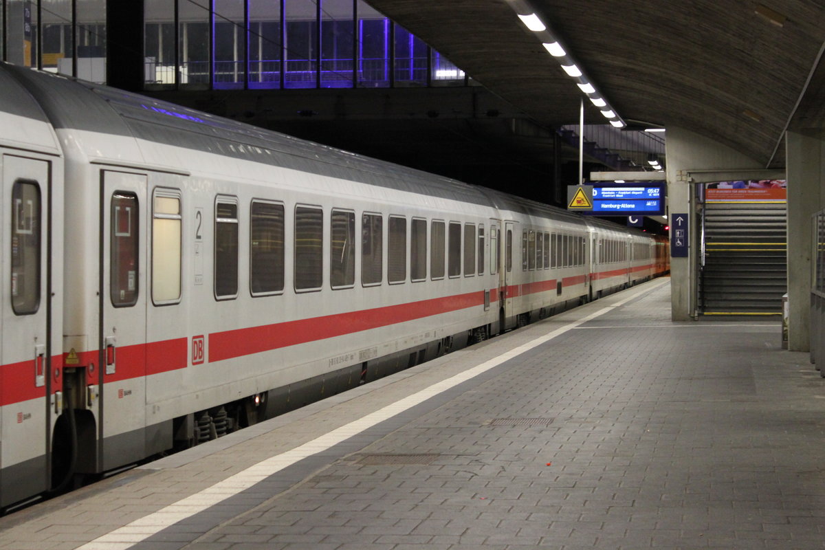 120 146-6 mit IC 2301(Warnemünde-München)kurz vor der Ausfahrt im Bahnhof Warnemünde.12.02.2017