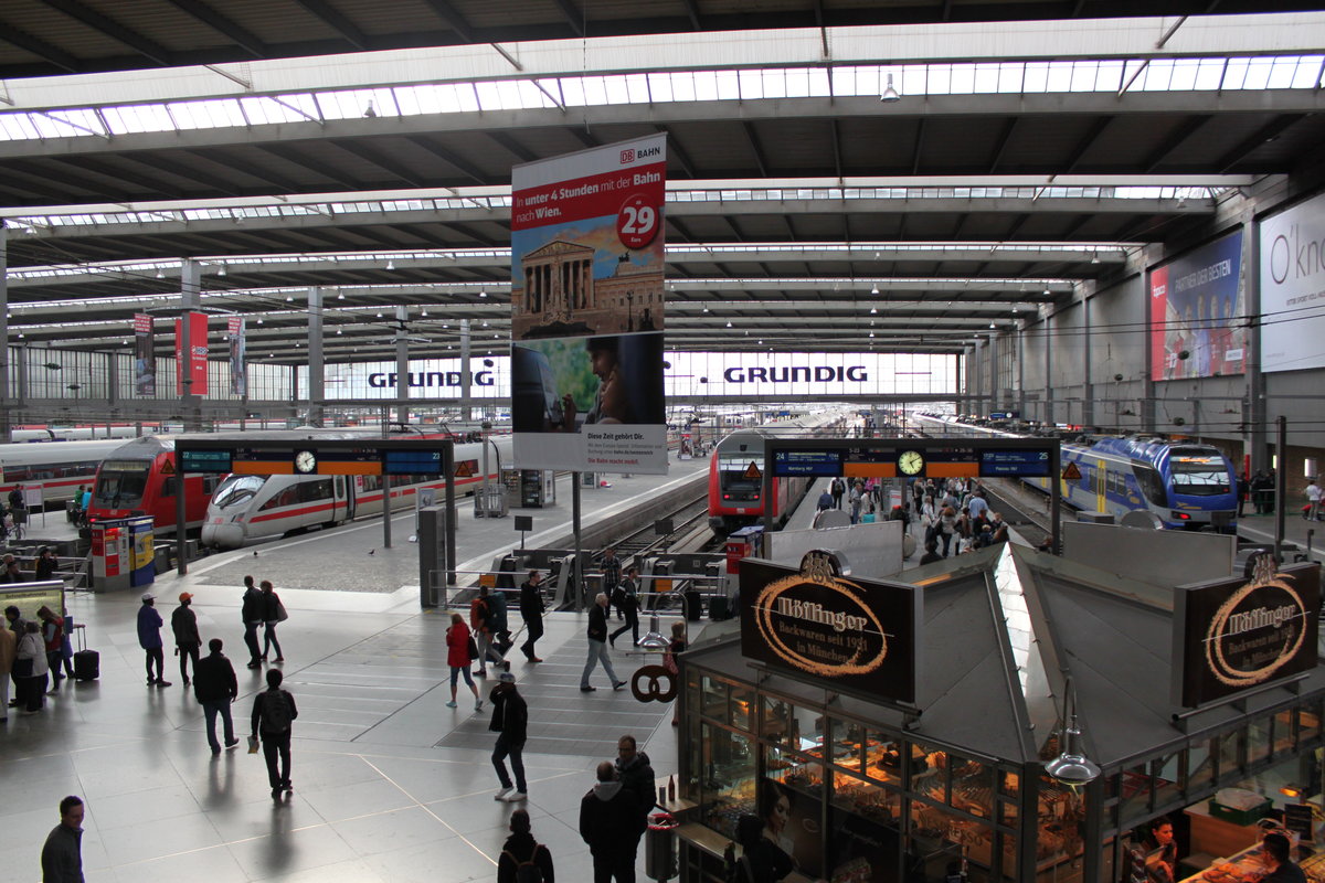 Blick in die Bahnhofshalle von München Hauptbahnhof am 05.09.2015.