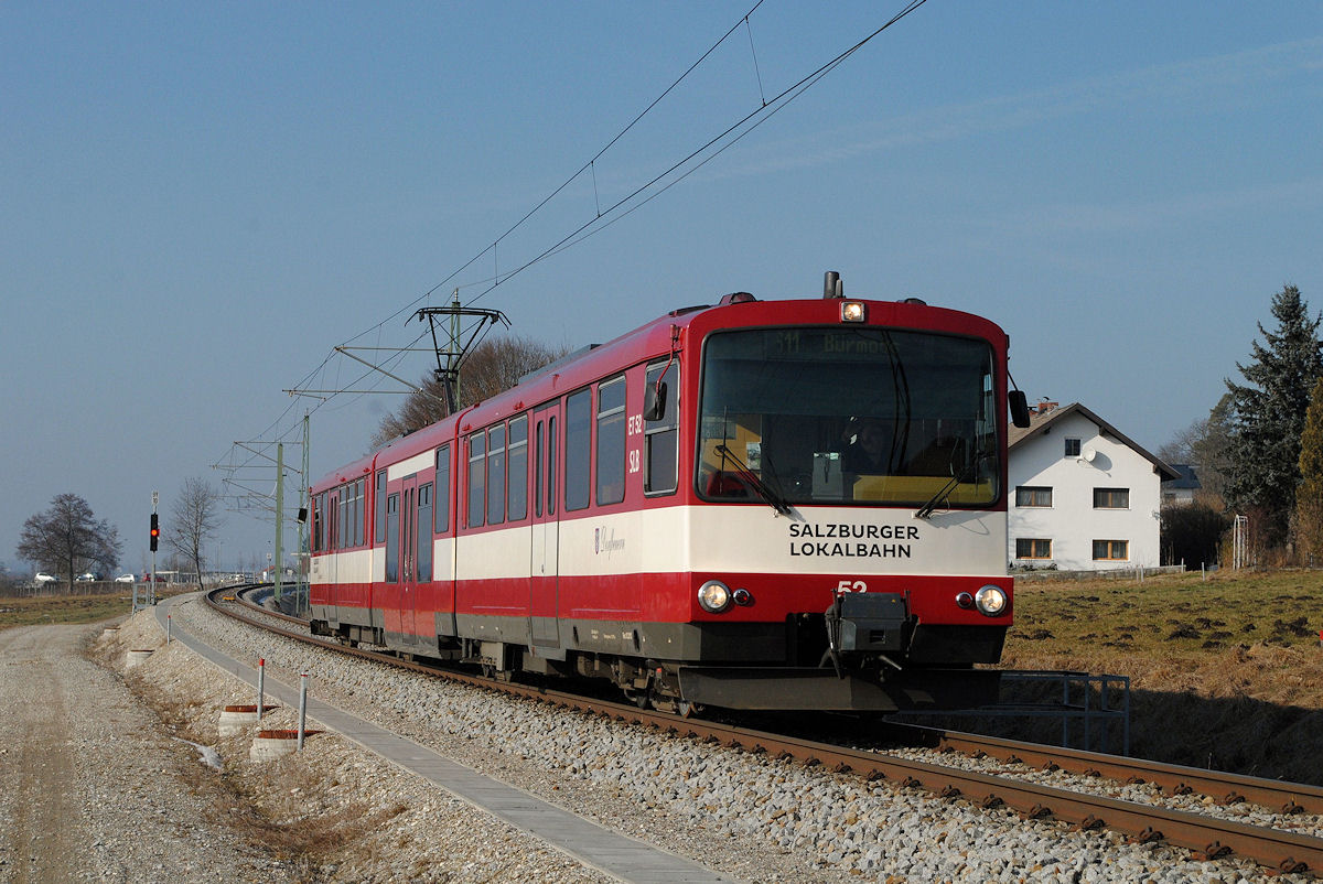 ET 318 ein Triebzug des Meridian als M 79065 kurz vor dem Bahnhof in Kufstein am 30.1.2017.