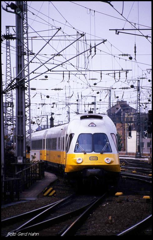 Airport Express 403001 fährt am 26.4.1990 um 14.46 Uhr als solcher in Köln Hauptbahnhof ein.