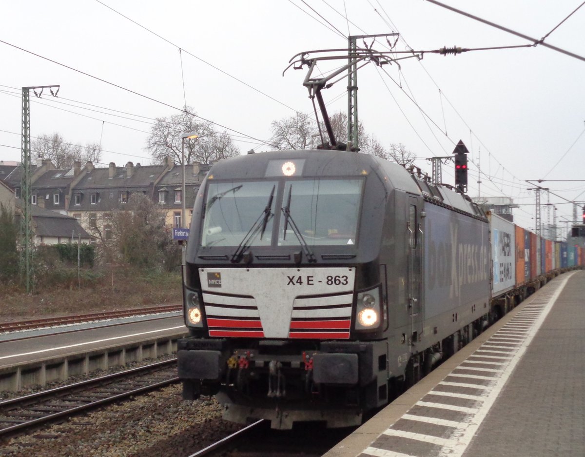 MRCE/Dispolok BoxXpress Siemens Vectron X4 E-863 (193 863) mit Containerzug am 10.02.17 in Frankfurt am Main Süd. Das Foto hat ein Freund von mir gemacht und ich darf es veröffentlichen