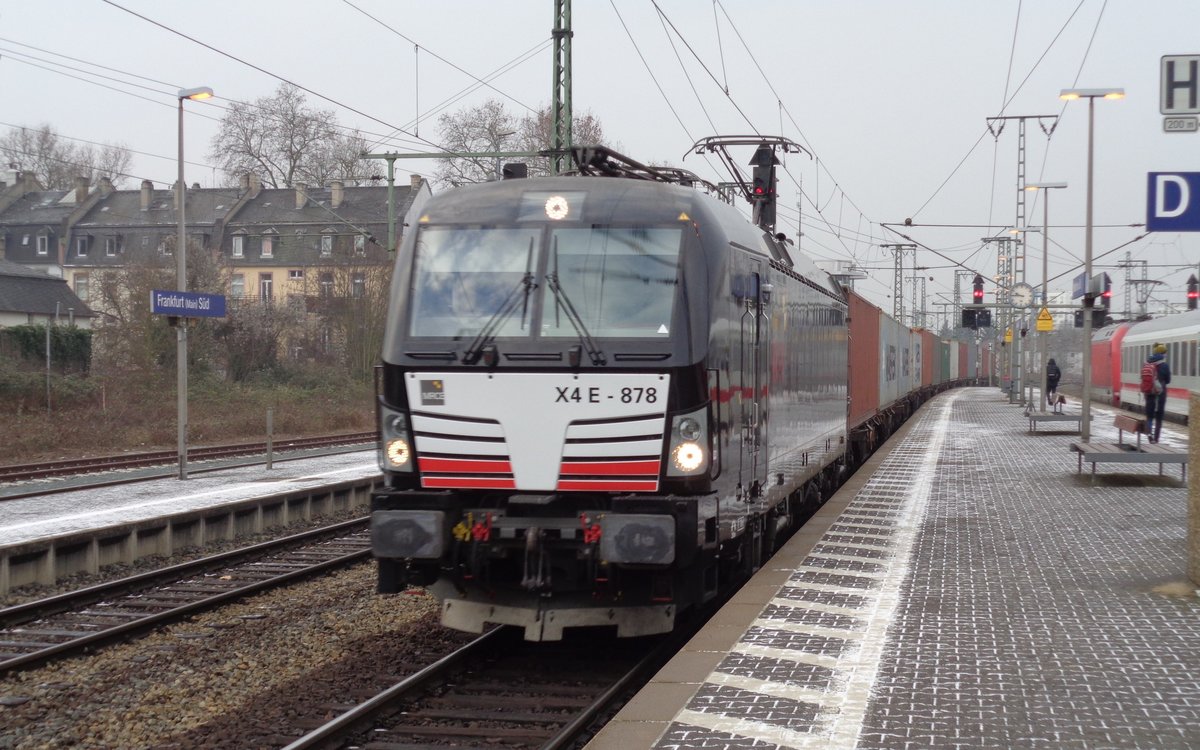 MRCE/Dispolok Siemens Vectron X4 E-878 (193 878) mit Containerzug in Frankfurt am Main Süd am 11.02.17. Das Foto hat ein Freund von mir gemacht und ich darf es veröffentlichen