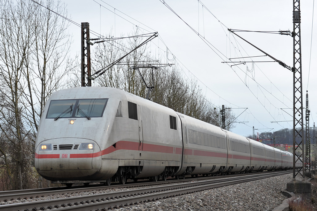 IC 2068 (Nürnberg Hbf-Karlsruhe Hbf) mit Schublok 101 063-8 bei Mögglingen 14.2.17