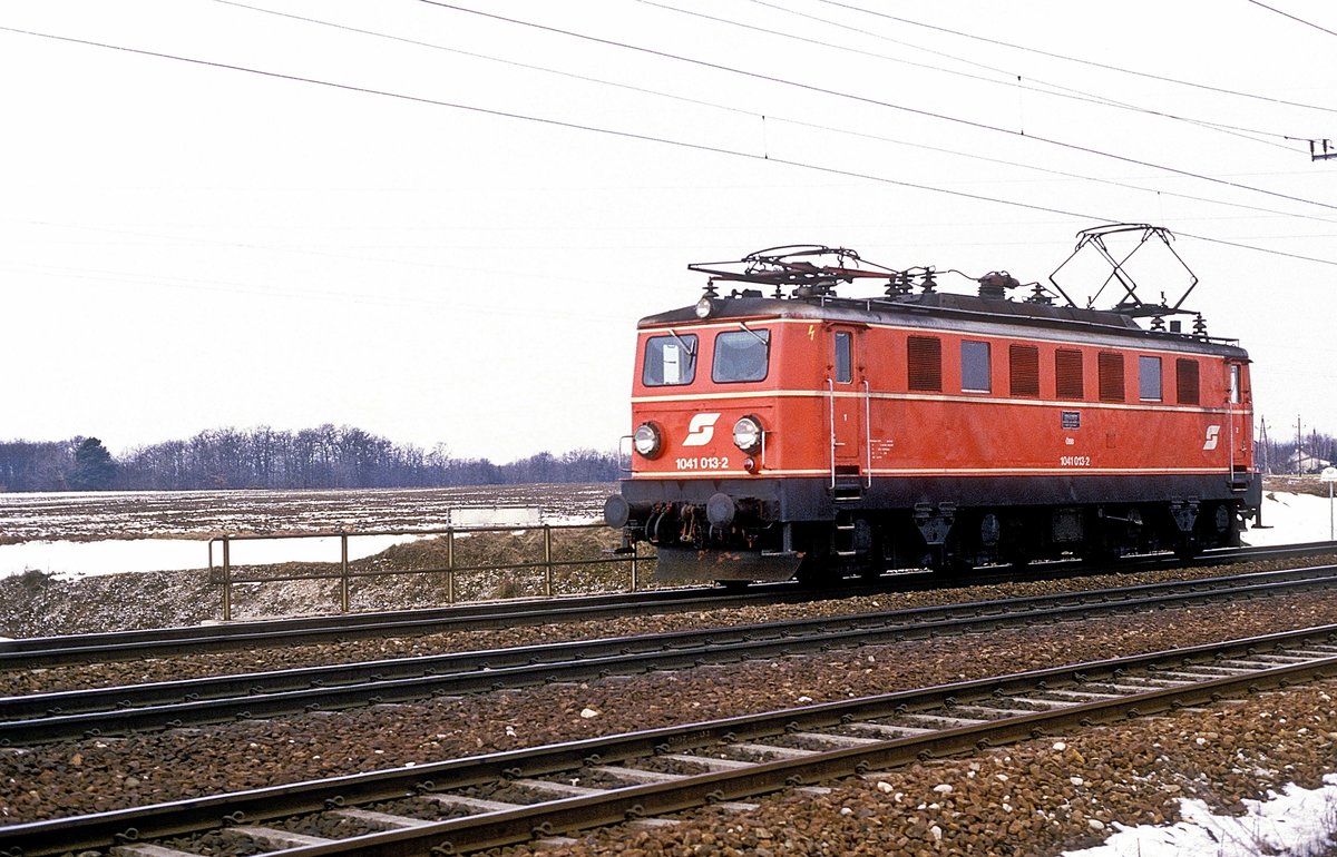 Nicht schlecht gestaunt habe ich, als am 26. Februar 2016 die 151 086 mit ihrem nachmittäglichen EZ 51733 von Nürnberg Rangierbahnhof nach München Nord bei Fahlenbach um die Ecke bog. Die Lok trägt immer noch orientrote Farbgebung aus den 1990-er Jahren, nur ihr weißes Lätzchen mußte sie im Laufe der Zeit gegen den Kontrastbalken eintauschen, wie ihn auch die verkehrsroten Schwesternmaschinen tragen.
