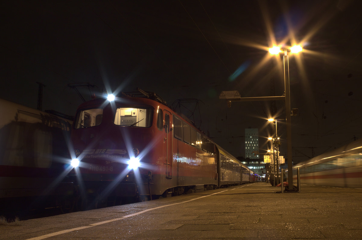 Die 110 491 konnte am Abend des 04.01.17 mit ihrem Autozug nach Lörrach im Bahnhof Hamburg Altona fotografiert werden.