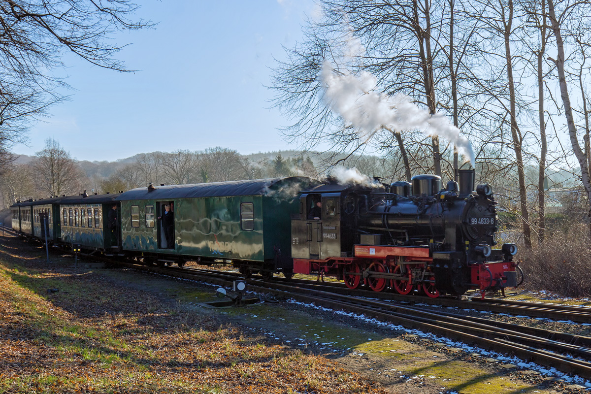 Scheinbar steht die RBB Lok 99 4633 unter dem Binzer Wasserkran und nimmt an der falschen stelle Wasser. - 15.02.2017