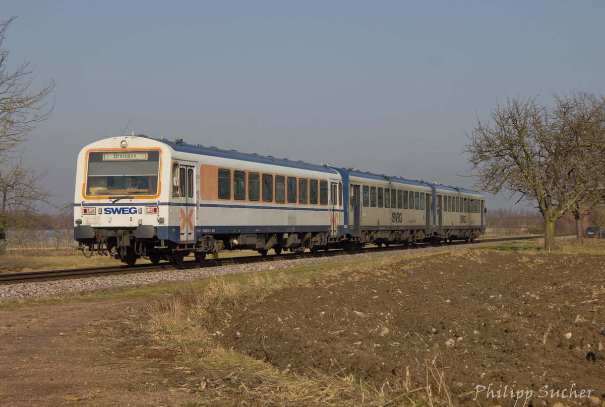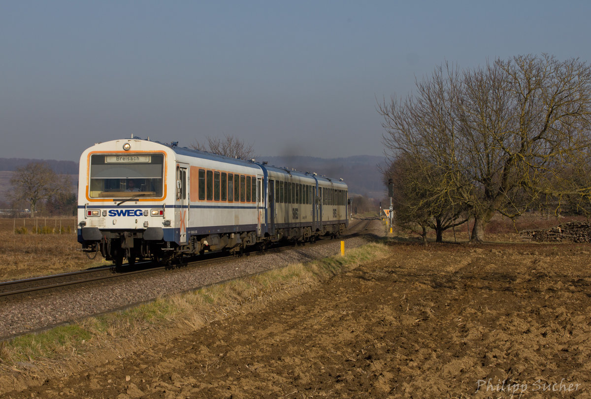 Kurz vor Königschaffhausen konnten SWEG VS 204, VT 128 und 129 am 15.02.2017 abgelichtet werden.