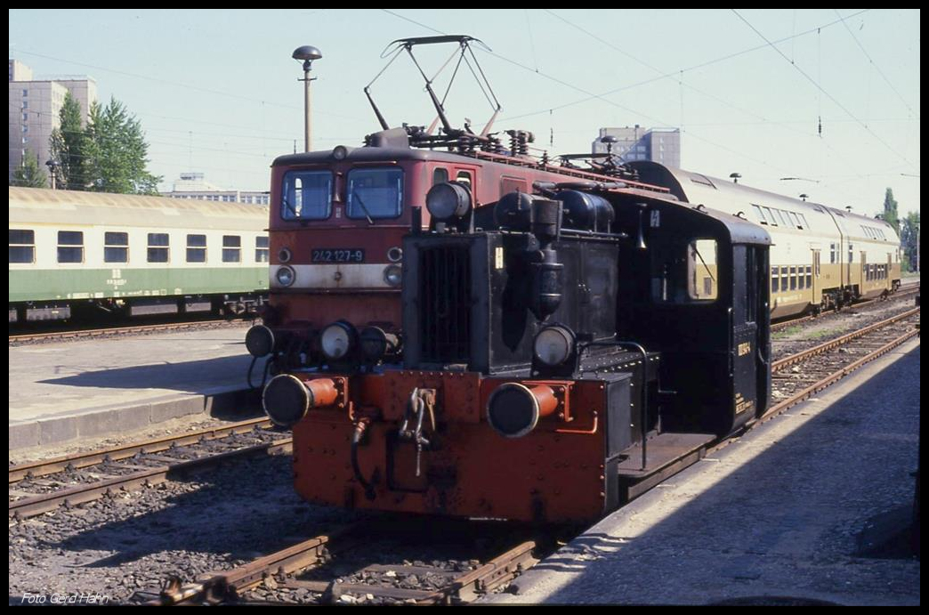 Am 1.5.1990 schlossen sich vor mir die Schranken in Groß Schönau und ich nutzte die Gelegenheit, die rangierende 100214 zu fotografieren.