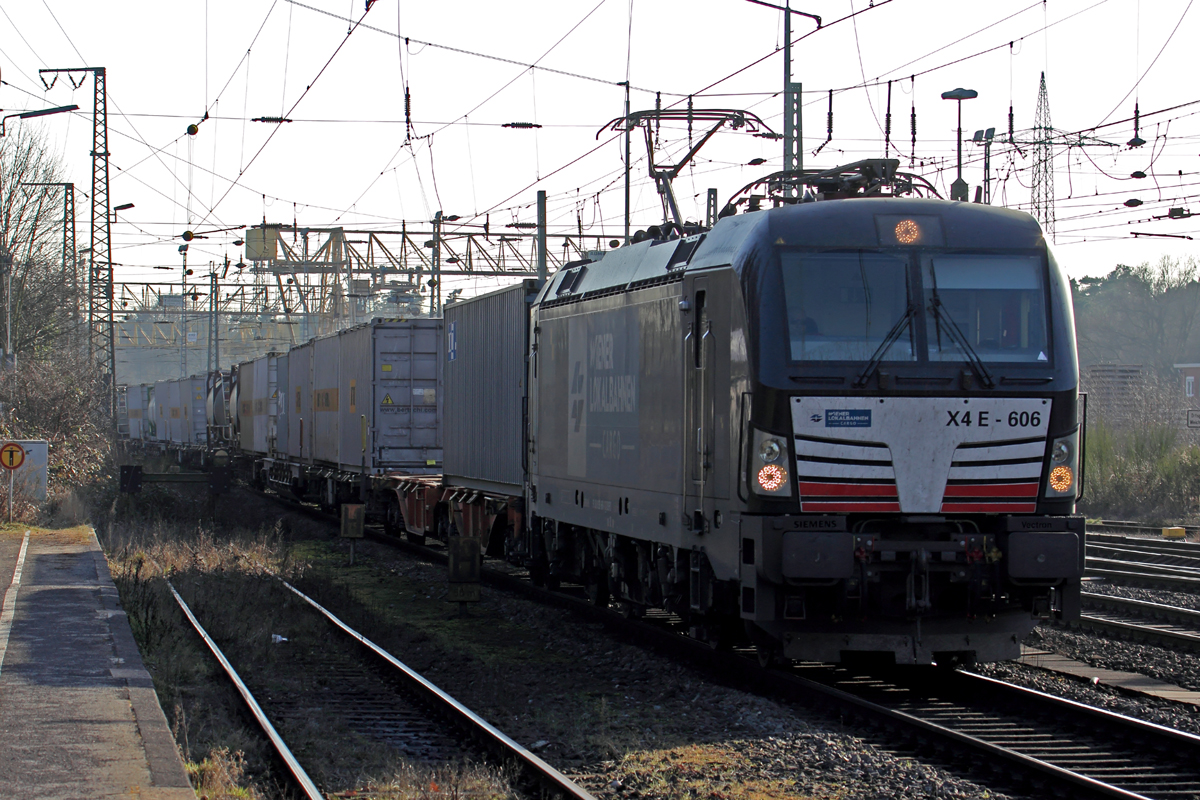 MRCE X4E-606 unterwegs für Wiener Lokalbahn Cargo in Duisburg-Entenfang 15.2.2017