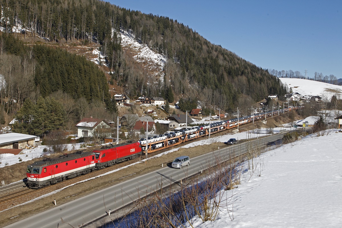 1144 249 + 1116 190 mit Güterzug kurz vor Mürzzuschlag am 15.02.2017.