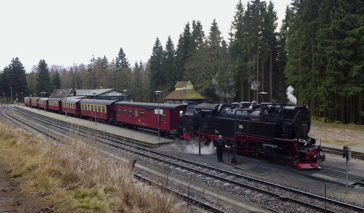 Der ausfahrende Rasende Roland fährt am Ra 10 in Binz LB vorbei. - 15.02.2017