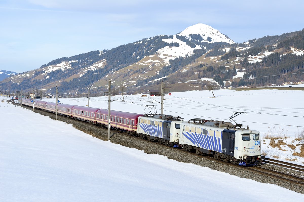 Am 27. Februar 2016 wurde der D 13189  Schnee-Express  aus Hamburg-Längenfelde ab Wörgl mit einem Tandem, bestehend aus 139 260 und 135, bespannt. Bei Brixen im Thale konnte der Zug - reinrassig aus Liegewagen des Unternehmens EuroExpress bestehend - unter der Hohen Salve fotografiert werden.