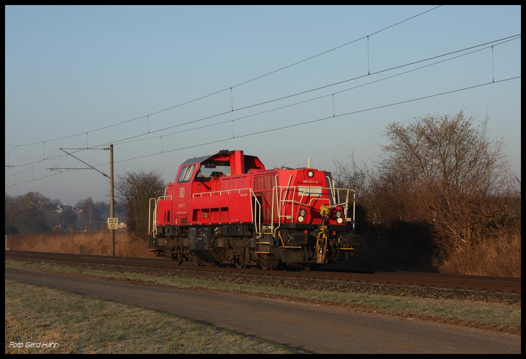 DB Gravita 261071-5 hier am 15.2.2017 um 8.41 Uhr zwischen Ibbenbüren - Laggenbeck und Westerkappeln - Velpe solo in Richtung Osnabrück unterwegs.