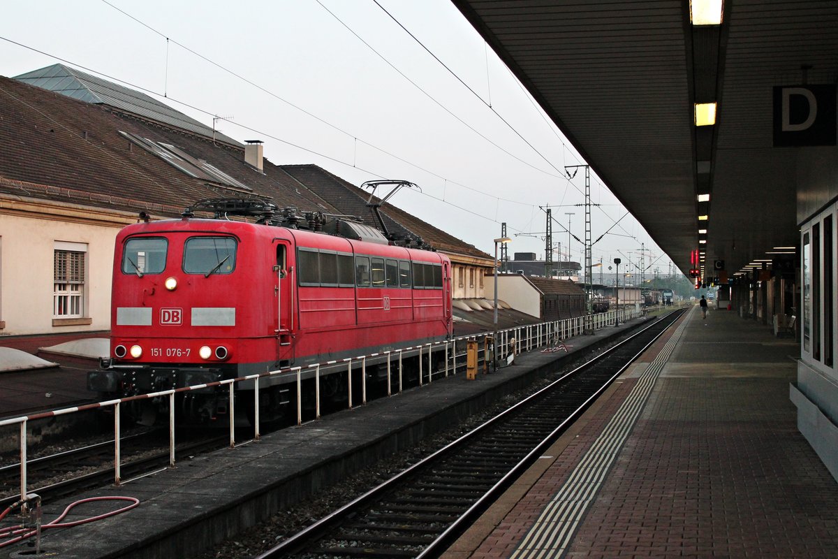 Durchfahrt am Morgen des 12.08.2015 von der 151 076-7 als Lokzug durch den Badischen Bahnhof von Basel in Richtung Rangierbahnhof Muttenz, um dort einen Güterzug in Richtung Norden zu bespannen.