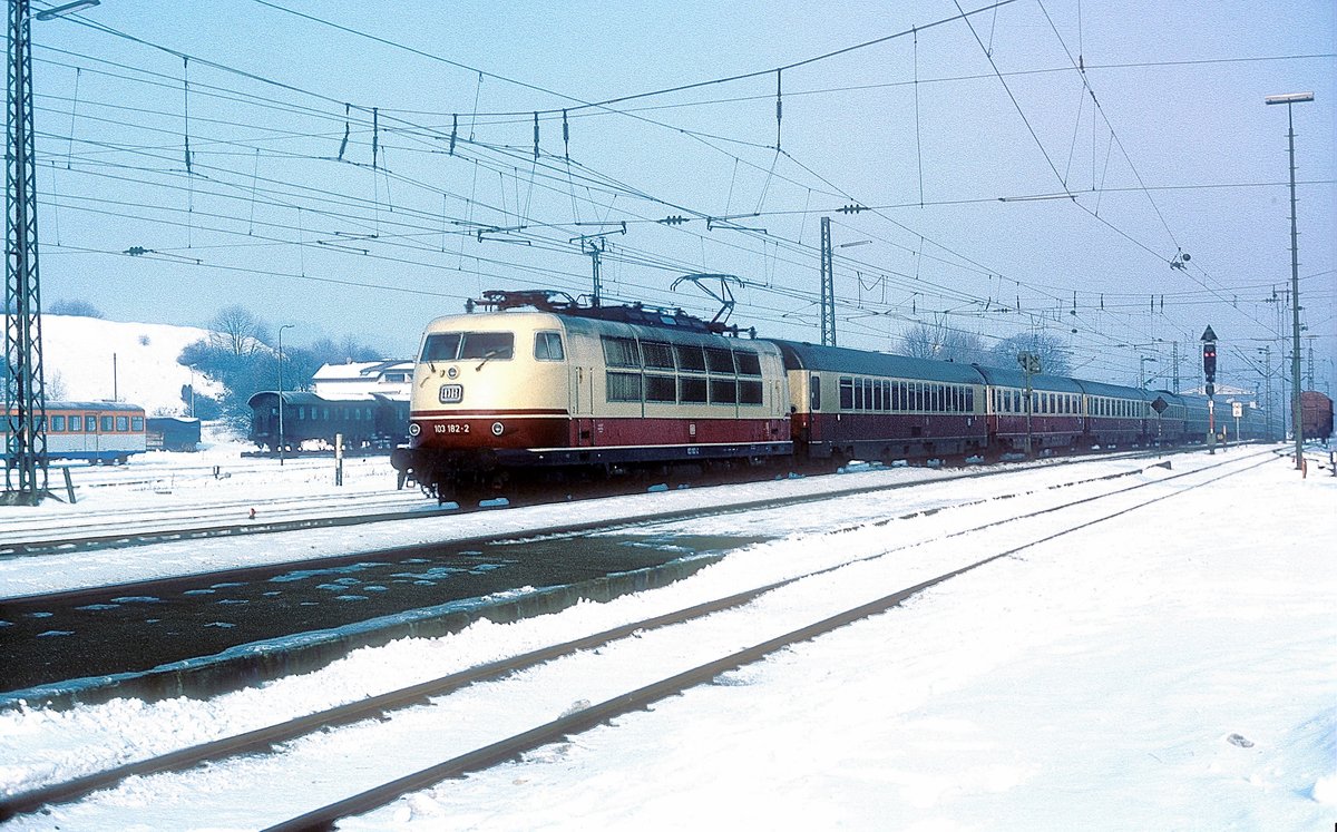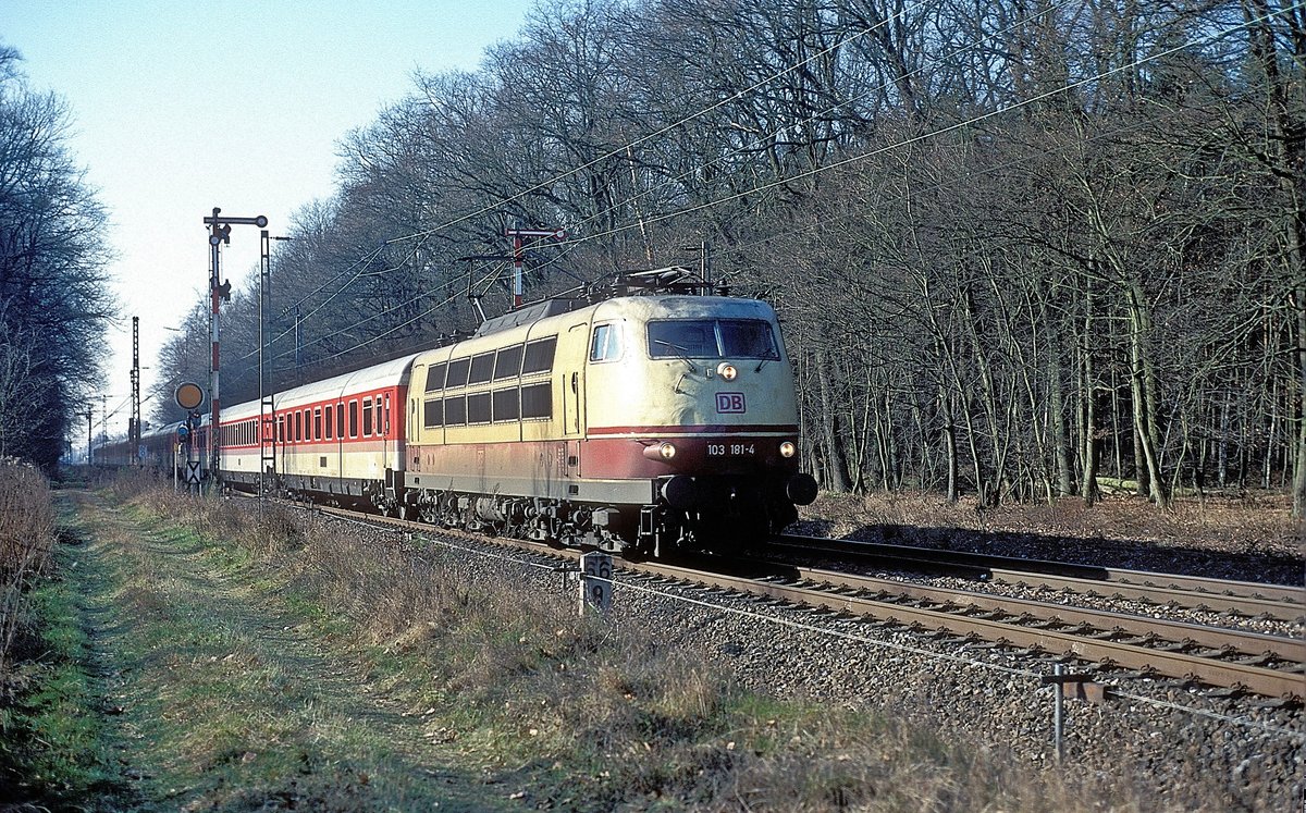 101 065-1 mit einem IC bei der Durchfahrt in Berlin-Schönefeld Flughafen am 20.02.2017
