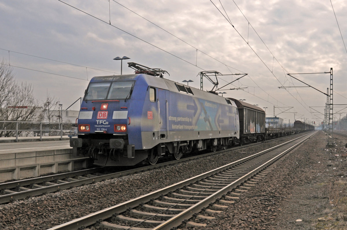 152 138-4 im Gross-Gerau (Dornberg) am 19.02.2017. Kamera für eine niedrige Perspektive auf den Boden von Bahnsteig 3 gehalten.