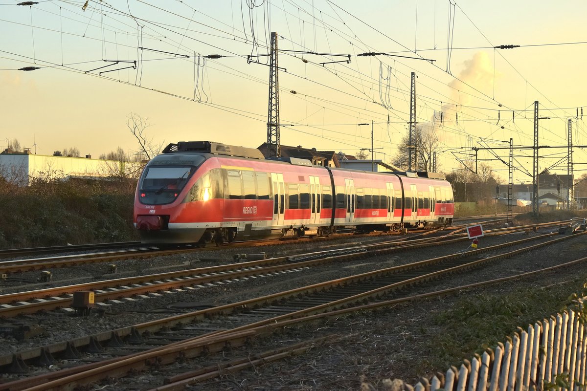Auch dieser Triebwagen der Baureihe 644 ist eine Pendelzug der zwischen Neuss Hbf und Grevenbroich den Zwischentakt zur Rushhour bedient. 14.2.2017