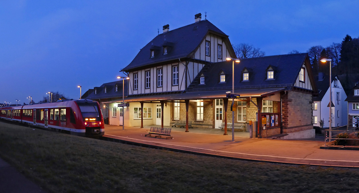 Bahnhof Bad-Münstereifel abends mit 620 025 - 20.12.2016