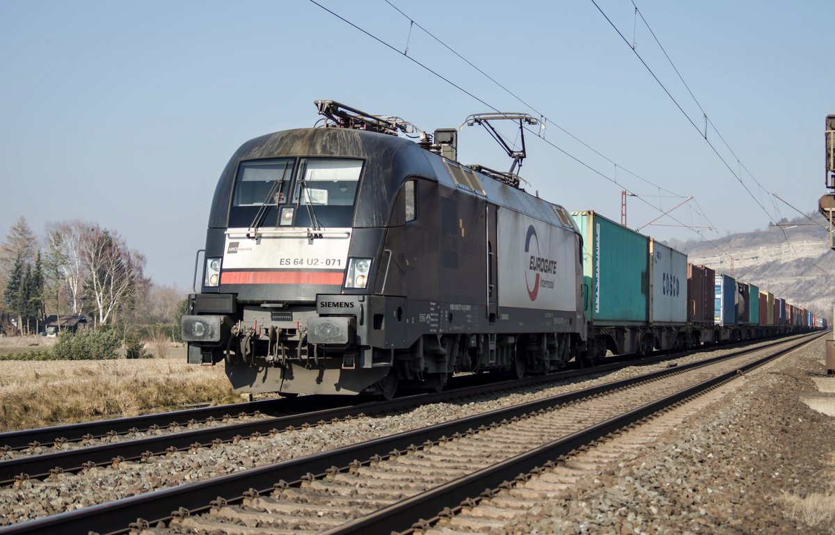 ES 64 U2-035 (182 535) ist am 15.02.2017 mit einen Containerzug bei Thüngersheim unterwegs.