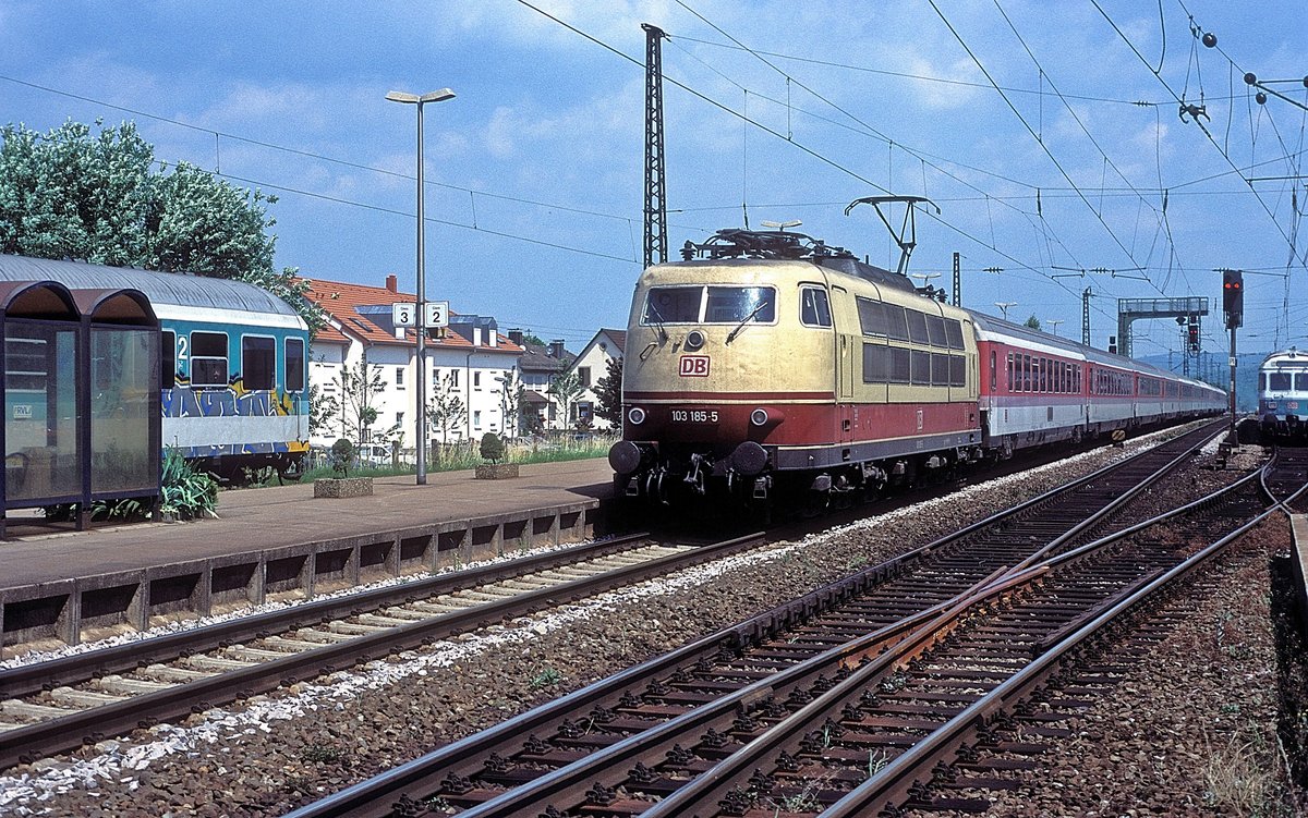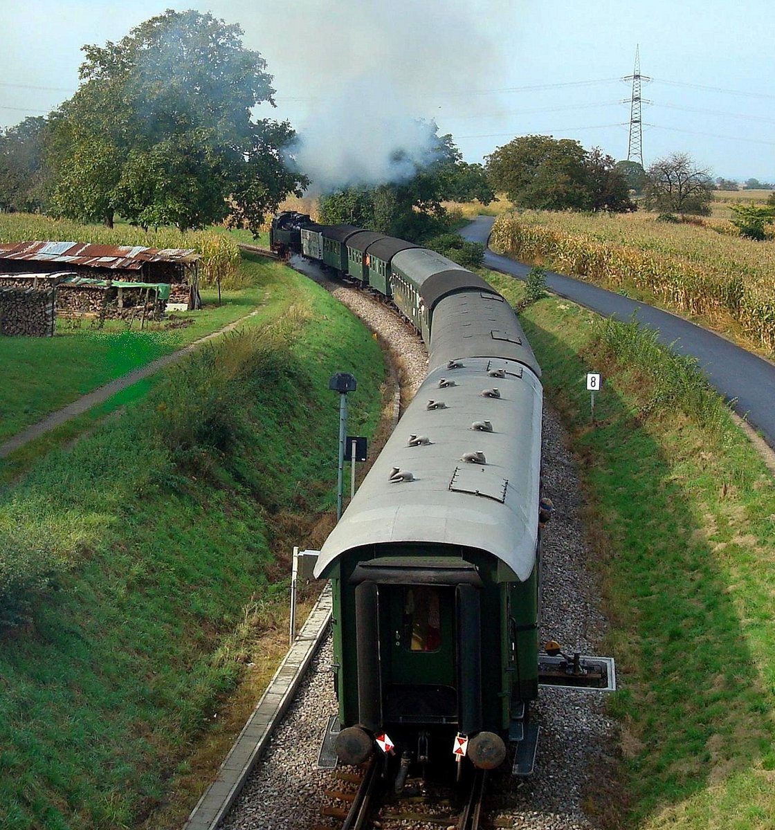 Museumszug  Rebenbummler auf dem Weg nach Breisach am Rhein, fotografiert von der Straßenbrücke der L116, Okt.2007