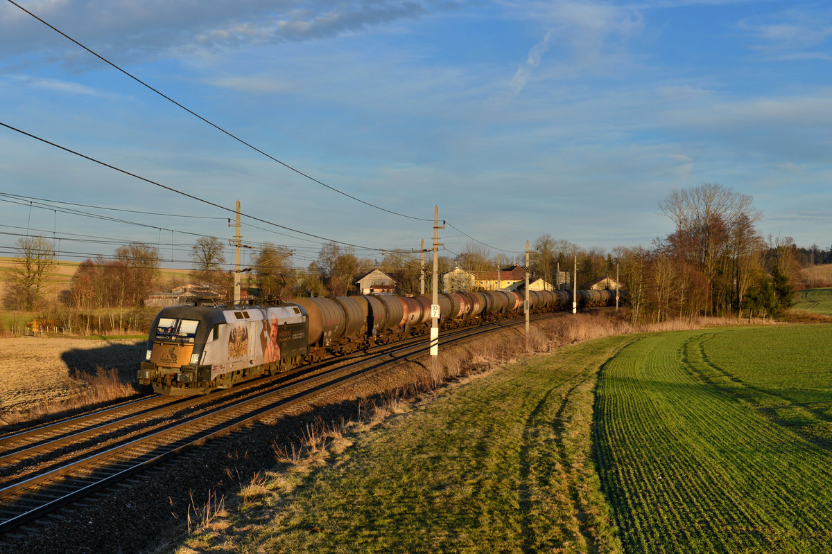 182 523 mit einem Kesselzug am 27.02.2017 bei Kimpling.