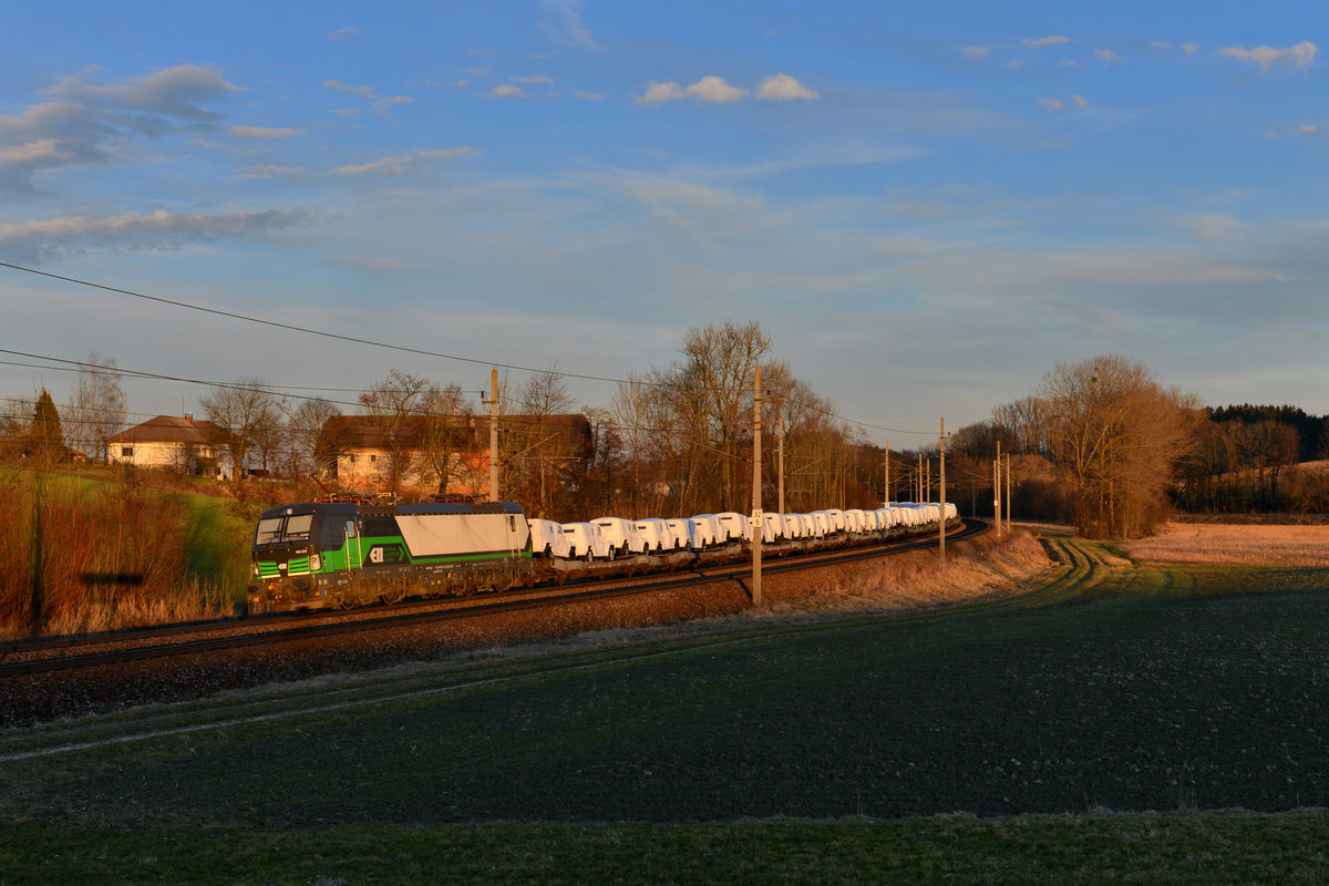 193 272 mit einem Autozug am 27.02.2017 bei Kimpling.