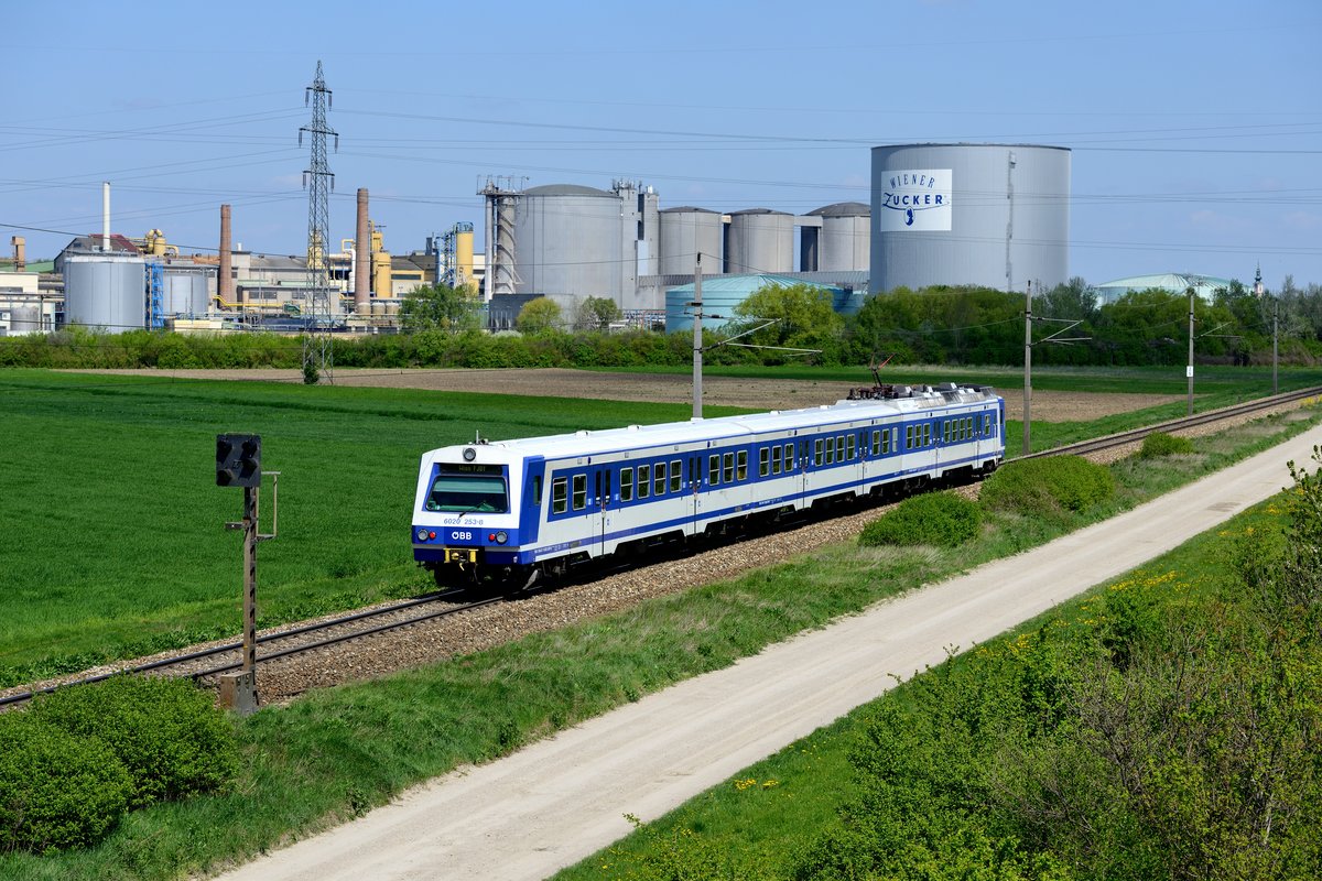 Der Personenverkehr im Tullnerfeld ist noch fest in der Hand der  Fernseher . Am 20. April 2016 konnte ich den 4020.253 als S40 auf seiner Fahrt zum Wiener Franz-Josefs-Bahnhof vor der Kulisse der Tullner Zuckerfabrik aufnehmen.