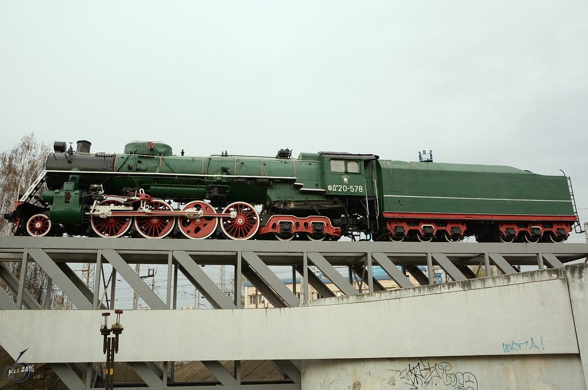 Die IS 20-578 steht in der Nähe des Bahnhofes Kiev-Passazhirsky. Sie gilt als einzige vollständig erhaltene Lokomotive der SŽD-Baureihe ИС (IS), welche ursprünglich den Namen Josef Stalin erhielt. (Aufnahme vom 09.04.2016)