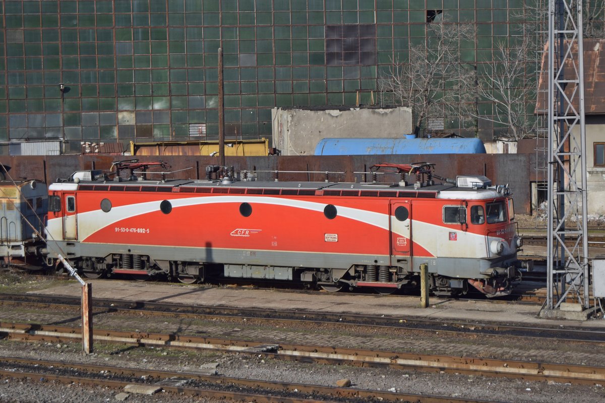 E-Lok 91-53-0-476692-5 bei einer Rangierfahrt in der Wagenabstellstelle des bukarester Nordbahnhofs am 26.02.2017.