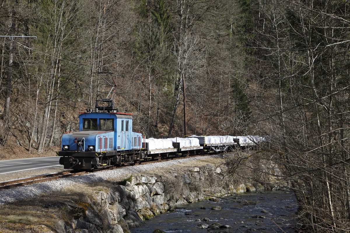 E3 mit Güterzug im Breitenauertal am 28.02.2017.