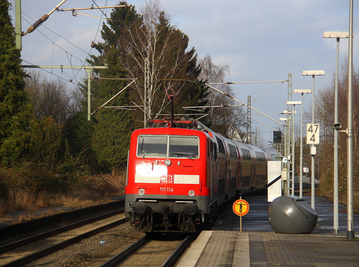 Ein Nachschuss von der 111 114 DB schiebt den RE4 aus Aachen-Hbf nach Dortmund-Hbf und kommt aus Richtung Aachen-Hbf,Aachen-Schanz,Aachen-West,Laurensberg,Richterich,Kohlscheid,Herzogenrath,Palenberg,Zweibrüggen,Frelenberg,Geilenkirchen,Süggerrath,Lindern,Brachelen,Hückelhoven-Baal,Baal und hält in Erkelenz und fährt dann weiter in Richtung Herrath,Beckrath,Wickrath,Rheydt-Hbf,Mönchengladbach-Hbf. Aufgenommen vom Bahnsteig 1 in Erkelenz.
