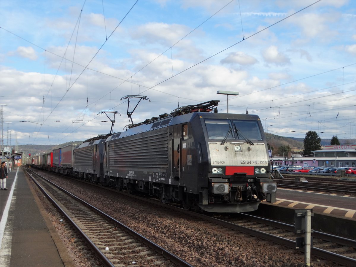 MRCE/Dispolok Siemens ES 64 F4-009 (189 909) und ES 64 F4-xxx (189 xxx) am 27.02.17 in Gelnhausen Bhf mit einen KLV Zug