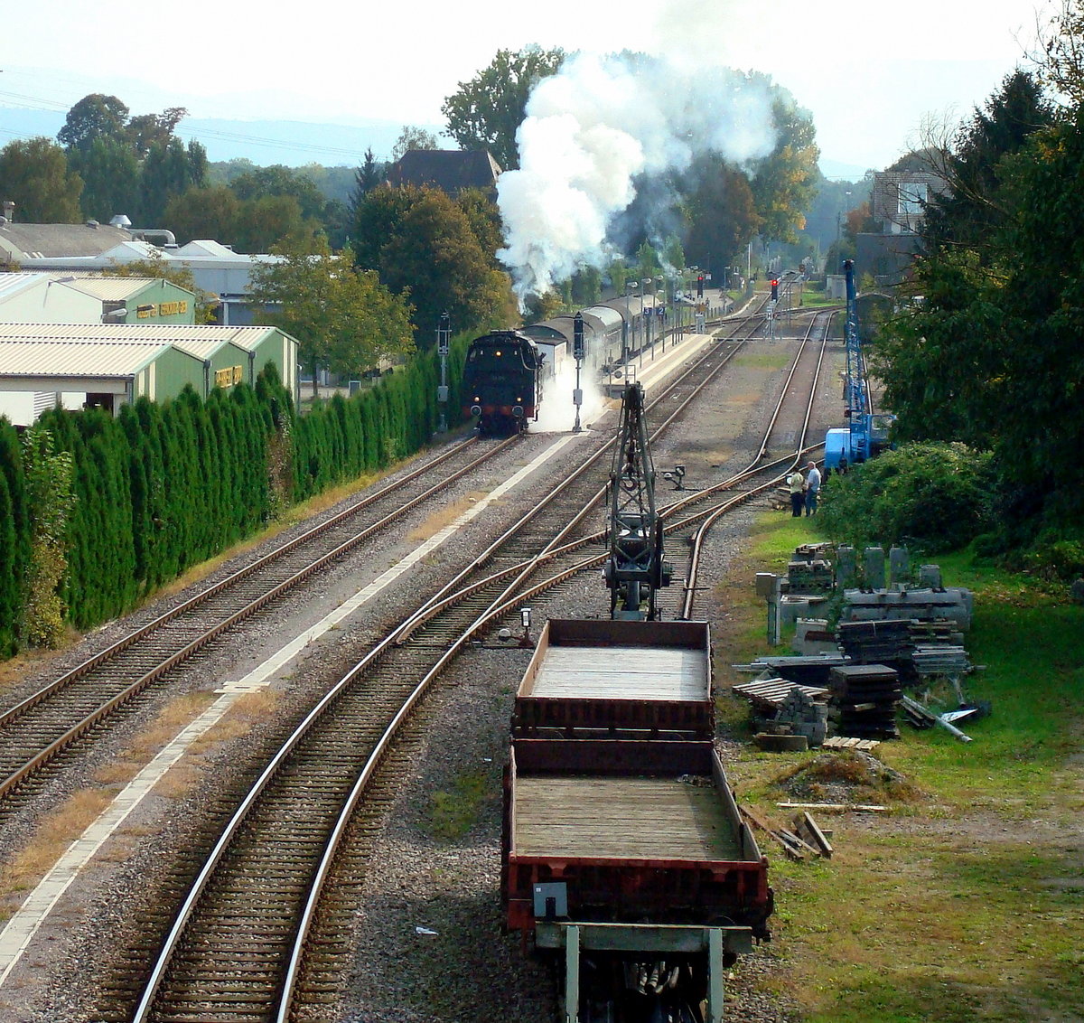 Museumszug "Rebenbummler auf dem Weg nach Breisach am Rhein, fotografiert von der Straßenbrücke der L116, Okt.2007