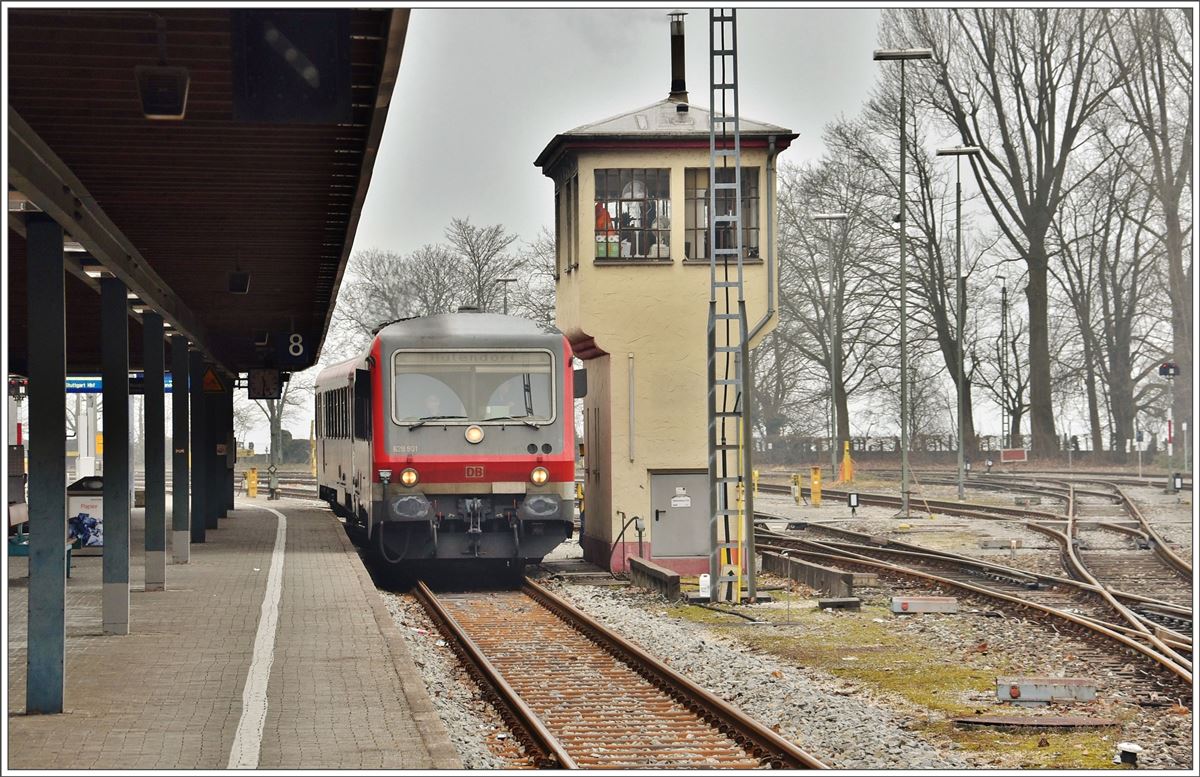Rb22846 nach Aulendorf mit 628 901/629 001 in Lindau Hbf. Das Stellwerk ist besetzt. (14.02.2017)