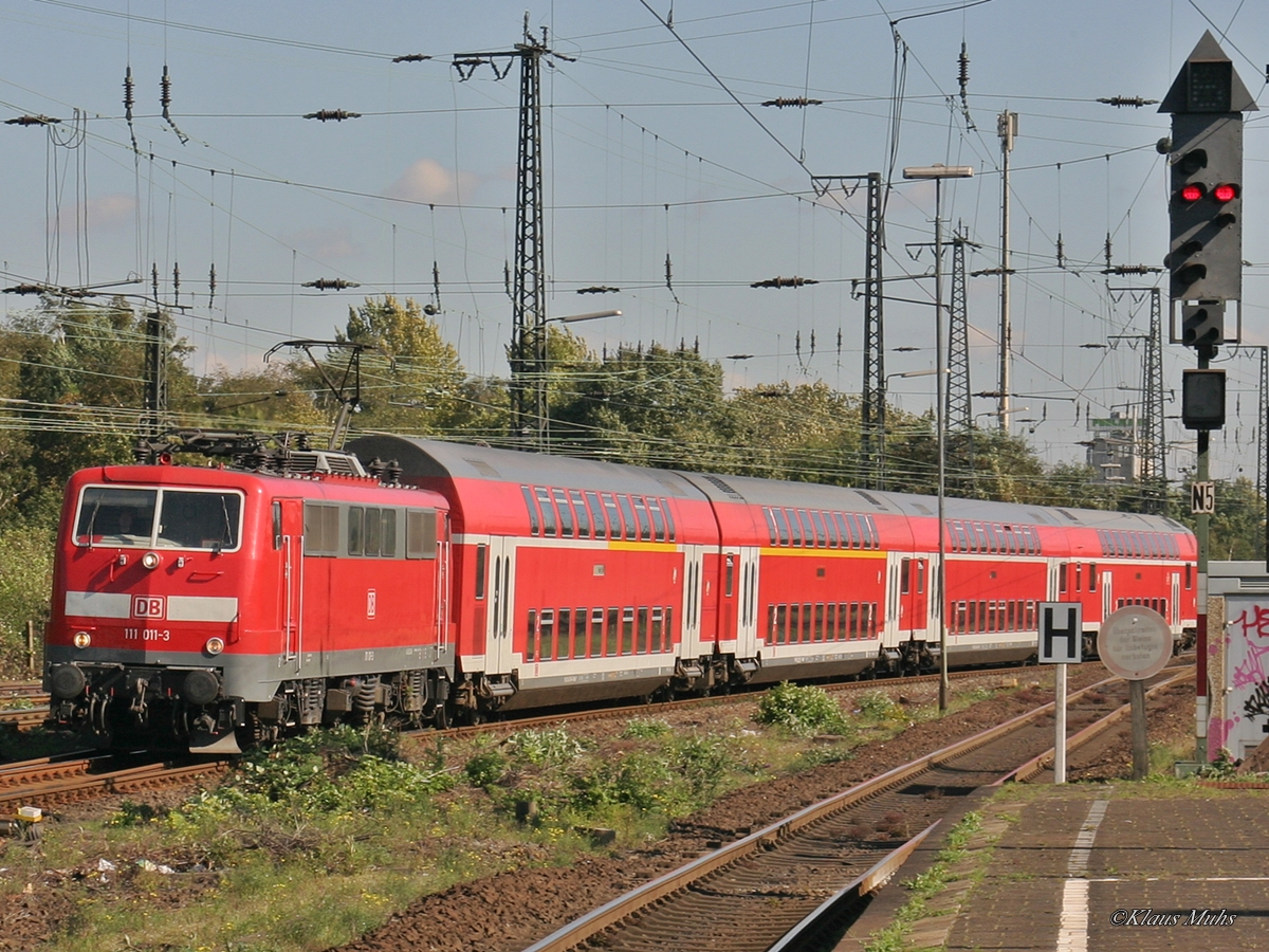 111 statt 146 - Am 24.09.2007 zog 111 011-3 statt einer BR146 den RE3 nach Düsseldorf Hbf. Wanne-Eickel Hbf. 24.09.2007