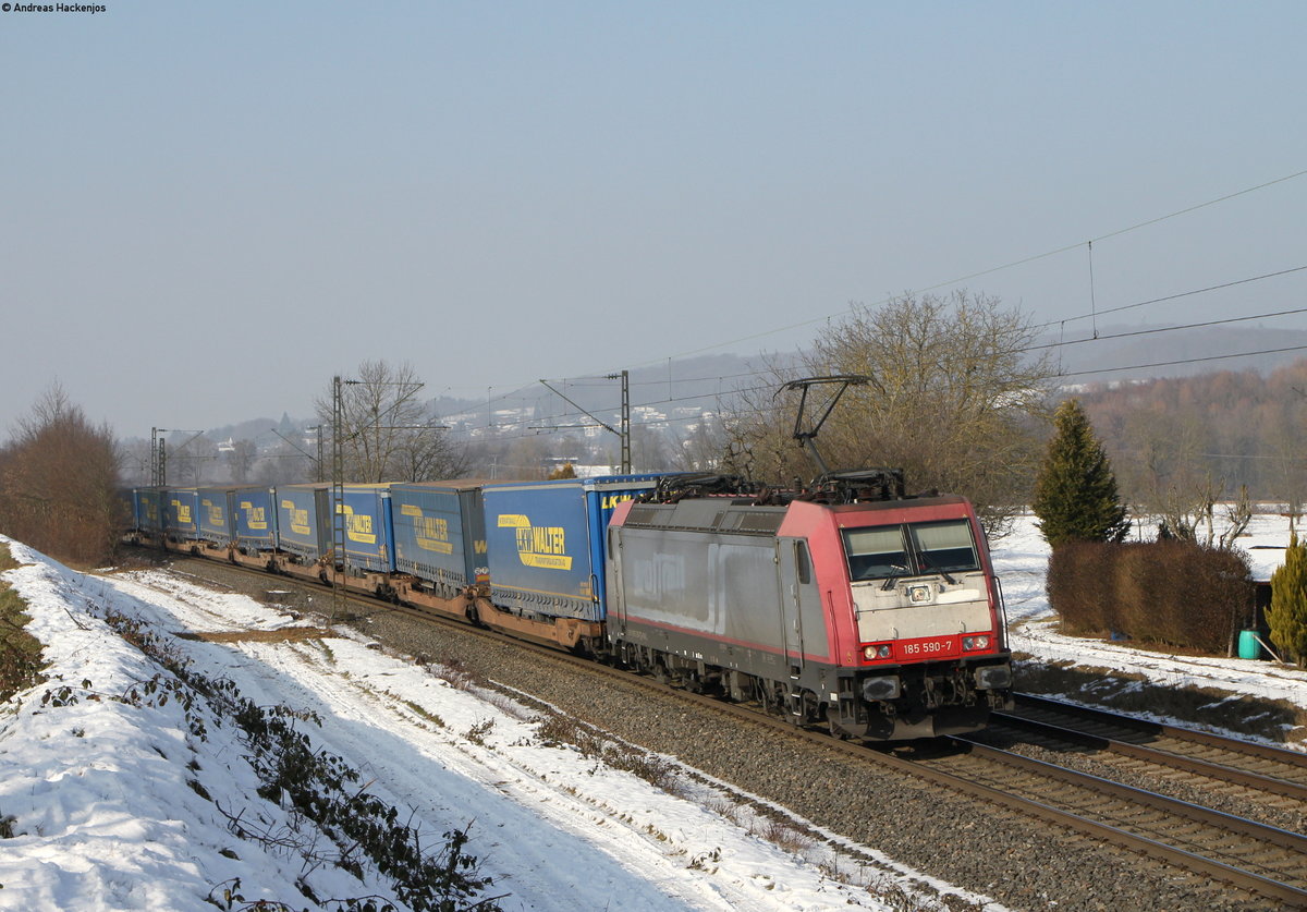Doppeltraktion, mit den DB Loks 185 115-3 und 185 103-9, durchfahren den Bahnhof Pratteln. Die Aufnahme stammt vom 16.01.2017.