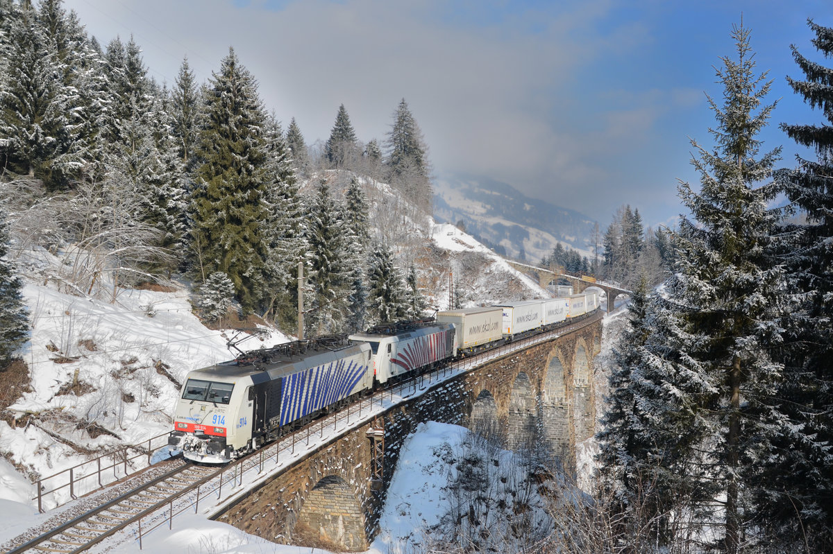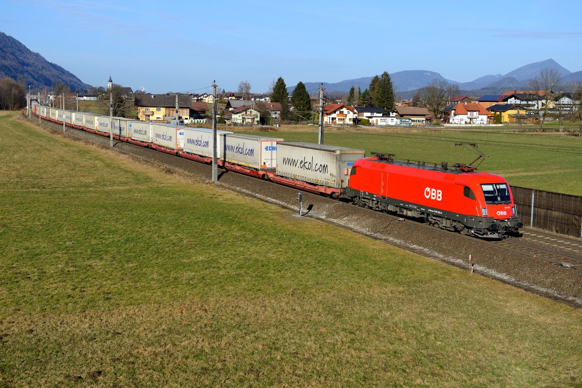 ES 64 F4-031 mit KLV in Richtung Rosenheim bei Kufstein am 30.1.2017.