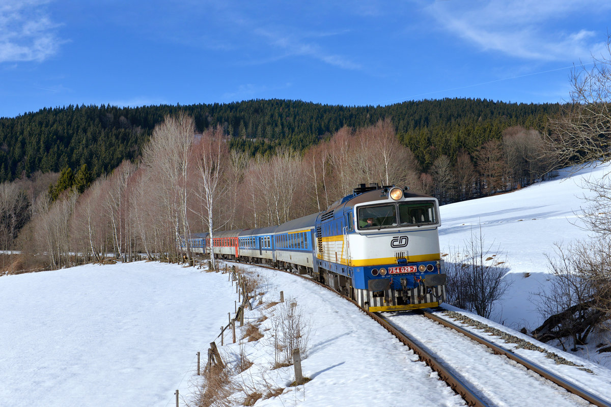 754 029 mit R 776 am 05.02.2017 bei Hojsova Stráž-Brčálník.