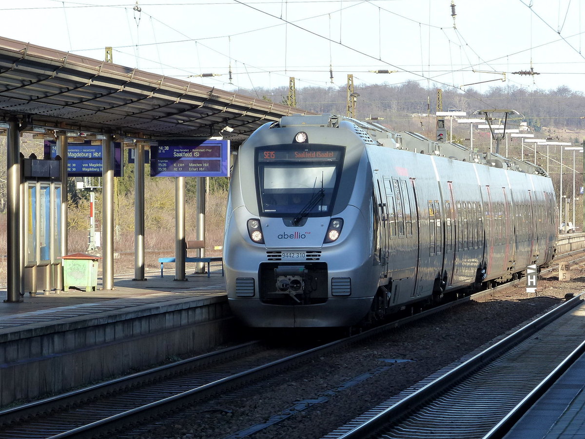 abellio 9442 310 als SE 74528 von Leipzig Hbf nach Saalfeld, am 04.02.2017 in Naumburg (S) Hbf.